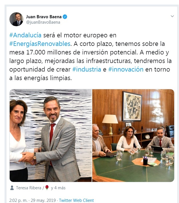 El presidente de la Asociación, Alfonso Vargas, se muestra entonces no obstante razonablemente optimista por tres motivos: (1) los objetivos fijados por el Gobierno central en el Plan Nacional Integrado de Energía y Clima, "que contempla 60.000 nuevos megavatios renovables para 2030"; (2) las políticas regionales y europeas, "que apuestan firmemente por impulsar la transición energética"; y (3) la entidad del empresariado andaluz, "totalmente preparado para invertir y liderar esta nueva etapa para las renovables". Por todo ello -considera-, "es imprescindible que contemos con autopistas eléctricas de gran potencia que vertebren nuestra región y permiten los desarrollos que todos esperamos”.