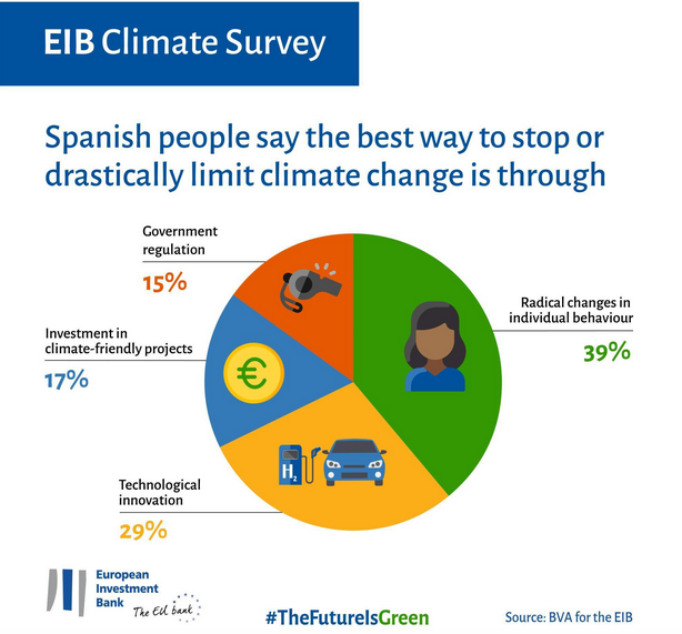 Ambroise Fayolle, vicepresidente del BEI, los resultados de la encuesta dejan claro un mensaje alentador: "Los ciudadanos europeos creen firmemente en el poder de su comportamiento individual para hacer frente a la crisis climática. Al mismo tiempo, una gran mayoría de los europeos cree que la acción climática debe tener en cuenta las desigualdades sociales para ser eficaz: nadie debe quedarse atrás en la transición verde. Este factor es crucial".