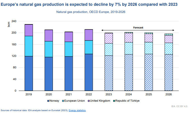 El Informe de mercado a mediano plazo de gas 2023 de la Agencia Internacional de Energía (AIE) ofrece una perspectiva sobre el desarrollo de la oferta y la demanda mundial de gas hasta 2026. Después de una década de expansión sin precedentes, se espera que el crecimiento de la demanda mundial de gas natural se desacelere en los próximos años. Es decir, la demanda general de gas de Asia Pacífico, Europa y América del Norte (que alcanzó su punto máximo en 2021) se prevé que disminuya un 1% anual hasta 2026 y que, en general, pase de crecer a una media del 1,6% anual entre 2022 y 2026, frente a una media del 2,5% anual entre 2017 y 2021.