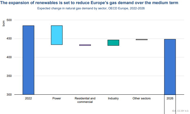 Un despliegue acelerado de energías renovables y una mayor eficiencia energética se encuentran entre los factores clave detrás de la tendencia a la baja del gas natural en estos mercados. El informe señala que la llegada de la crisis energética mundial en 2022, provocada por la invasión rusa de Ucrania, ha marcado el comienzo de una era diferente para los mercados mundiales del gas después de su década de fuerte crecimiento entre 2011 y 2021.