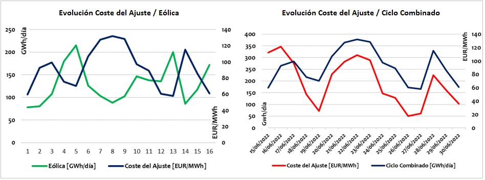 • La evolución coste del ajuste durante los primeros días de aplicación del mecanismo ha estado marcado por la evolución de la programación generación de ciclo combinado (valor necesario para el cálculo del ajuste) y la disponibilidad de generación eólica.