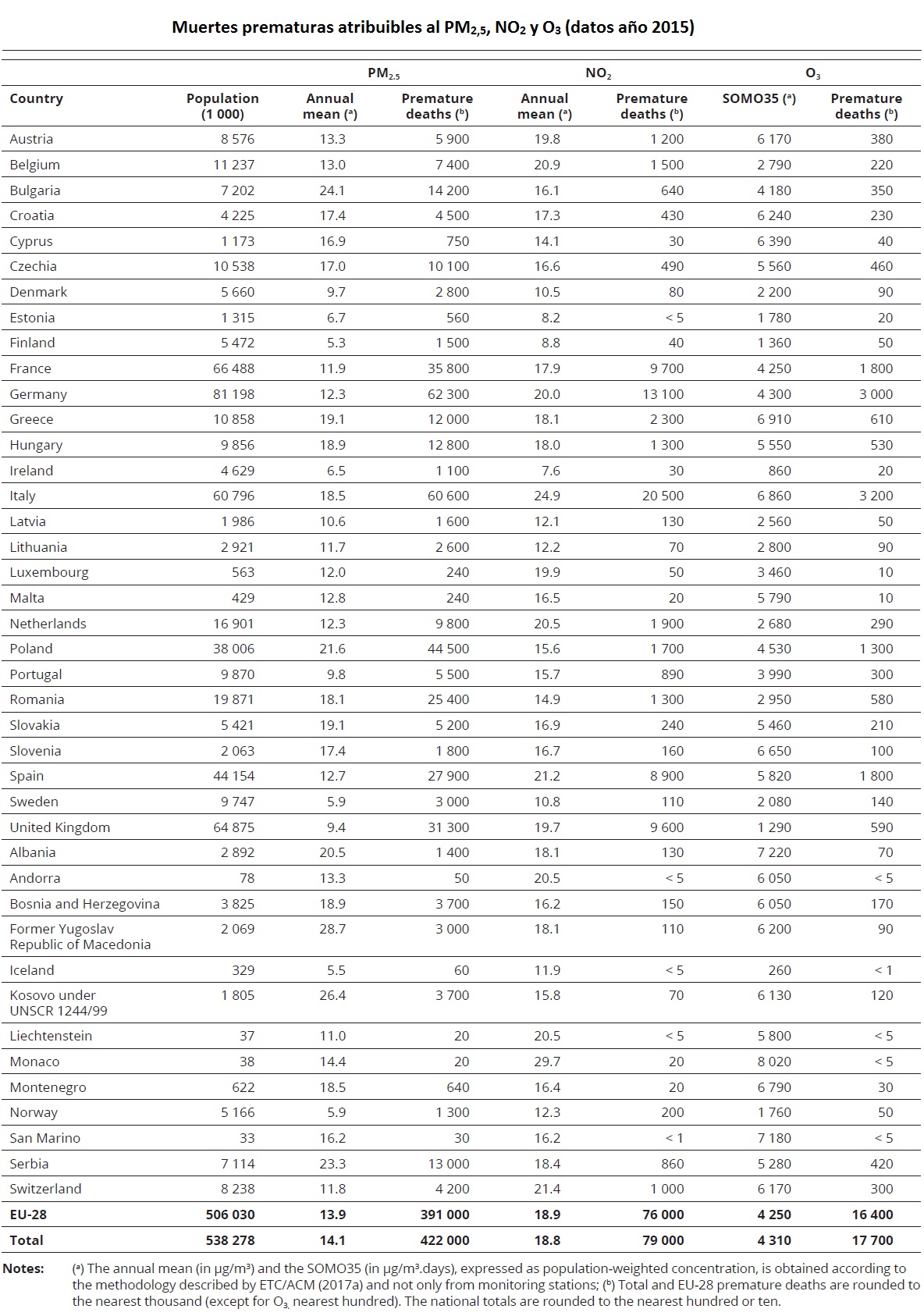 En todo caso, las conclusiones a las que han llegado la Escuela de Higiene y Medicina Tropical de Londres, la Universidad de Fudan y el propio Consejo Superior de Investigaciones Científicas coinciden con las apuntadas por otros organismos de similar estatura, como la Agencia Europea de Medio Ambiente, que en su informe Air Quality in Europe 2018 report establece que el número anual de muertes prematuras por exposición a la contaminación del aire se eleva en Europa por encima del medio millón, casi 40.000 de ellas en España. Hasta el 98% de la población urbana de la Unión Europea (UE) respira, según esta Agencia, aire que rebasa los límites de contaminación que marca la Organización Mundial de la Salud (OMS).