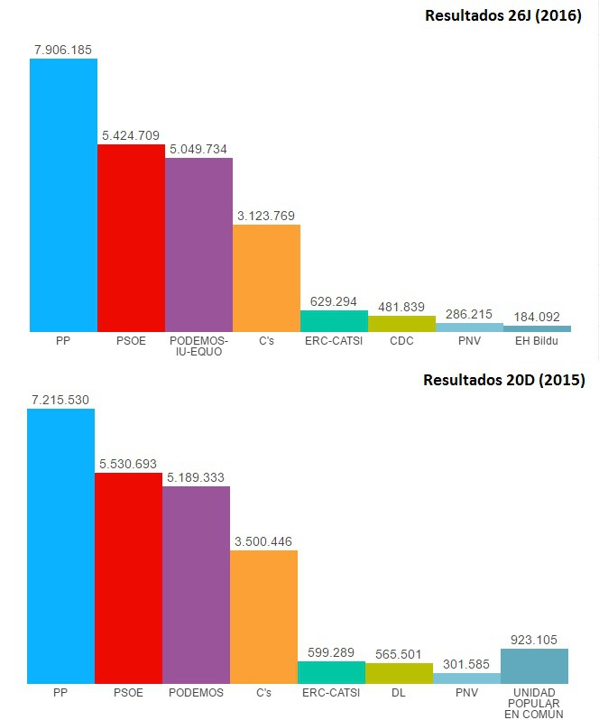 10. Pierden 8 escaños Ciudadanos, 5 el PSOE y 1 el PNV. El PP obtiene 14 diputados más que en el 20D.