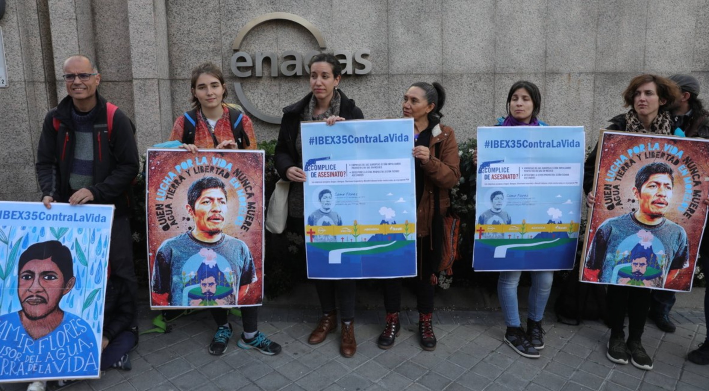 La organización ecologista española, junto a los colectivos Observatorio de Multinacionales en América Latina, el centro de documentación Cedoz, Y Retiemble, La Villana de Vallekas y Tierra y Territorio, se manifestaron ayer, junto a las representantes del Frente de Pueblos en Defensa de la Tierra y Agua Morelos. Lo hicieron frente a la sede de Enagás para exigir a esta empresa que se retire del proyecto. El 20 de febrero -recuerdan los ecologistas- se cumplió un año del asesinato de Samir Flores, indígena nahua, campesino y comunicador popular de la comunidad originaria de Amilcingo, muy activo en la oposición al Proyecto Integral Morelos y conocido por denunciar los impactos de esta infraestructura.