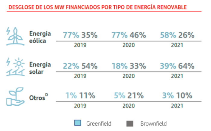 Banco Santander destinó más de 32.000 millones de euros en 2021 a financiación verde como financiación de proyectos, préstamos sindicados, bonos verdes, financiaciones de capital, asesoramiento, estructuración y otros productos, según informa en un comunicado. El objetivo es alcanzar los 120.000 millones en 2025. En 2021 la entidad ayudó a financiar o asesorar proyectos greenfield de energías renovables con una capacidad total instalada de 13,604 megavatios (MW), evitando la emisión de 251 millones de toneladas de CO2 y contribuyó a la ampliación, mejora y mantenimiento de proyectos de infraestructura de energías renovables existentes (brownfield), con una capacidad instalada total de 1,776 MW. Los proyectos de renovables financiados tienen una capacidad de generación de energía equivalente al consumo anual de 9,2 millones de hogares. La entidadha movilizado 65.700 millones de euros en financiación verde en sólo tres años.