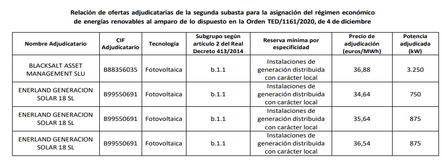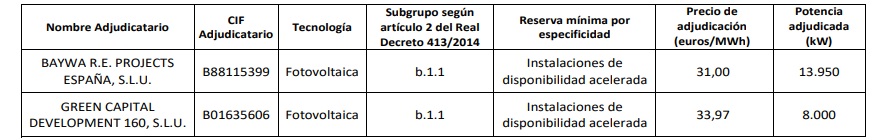 La resolución del Ministerio con los resultados de la subasta puede consultarse aquí.