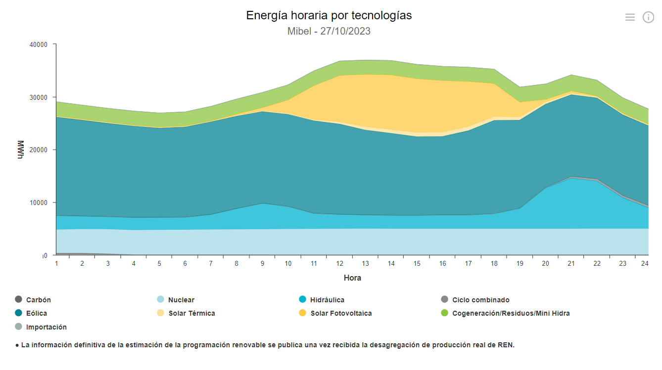 En lo que va de octubre, la media del mercado eléctrico se sitúa en los 97,6 euros/MWh, frente a los 127,21 euros/MWh que registró el 'pool' en el mismo mes de 2022. Al precio medio del 'pool' se sumaría la compensación a las gasistas, que tiene que ser abonada por los consumidores beneficiarios de la medida, los consumidores de la tarifa regulada (PVPC) o los que, a pesar de estar en el mercado libre, tienen una tarifa indexada, pero que se sitúa nuevamente en 0 euros/MWh, situación que se repite desde el pasado 27 de febrero.