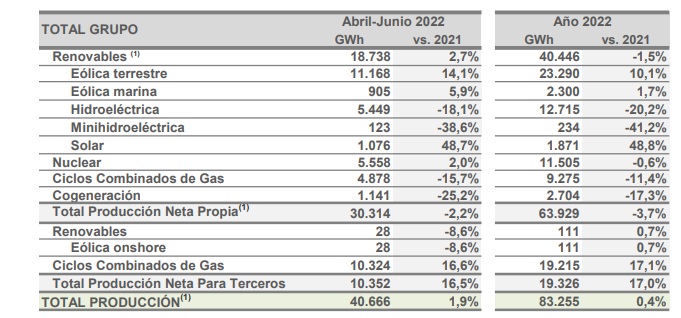 Iberdrola ha producido en el primer semestre de 2022 en sus centrales nucleares españolas (tiene 3.177 megavatios de potencia) más electricidad que la que han generado todos sus parques eólicos y todas sus instalaciones hidroeléctricas juntas. En concreto, la compañía ha generado con uranio en sus centrales nucleares de Almaraz, Cofrentes, Trillo y Vandellós 11.505 gigavatios hora de electricidad, frente a los 10.800 que han salido de sus centrales hidroeléctricas y parques eólicos. Ese es uno de los datos contenidos (y destacados) del Balance Energético del Primer Semestre 2022, balance que la compañía acaba de entregar a la Comisión Nacional del Mercado de Valores, que es el organismo encargado de la supervisión e inspección de los mercados de valores españoles y de la actividad de cuantos intervienen en los mismos. El gas ha sido el otro gran protagonista del semestre en la actividad de la compañía. Iberdrola ha generado en España en estos seis primeros meses del año 2022 un 31% más electricidad que durante el mismo periodo del año pasado, incremento extraordinario (+31%) que contrasta con el dato referido a la demanda registrada durante este primer semestre del año: según Red Eléctrica, que es el operador del sistema eléctrico nacional, la demanda de electricidad en España en los seis primeros meses de 2022 se ha quedado dos puntos por debajo (-2%) de la demanda registrada en el año anterior. [Bajo estas líneas, producción neta de electricidad de Iberdrola en España].