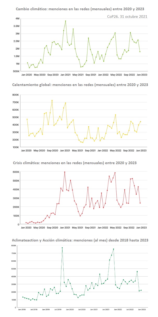 Dentro del estudio se encuentra información acerca de las conversaciones alrededor del cambio climático, recopiladas a través de las herramientas de escucha activa en redes sociales de Brandwatch, que han ayudado a analizar la coyuntura a un nivel macro, a partir de más de mil millones de menciones de palabras clave en Internet.
