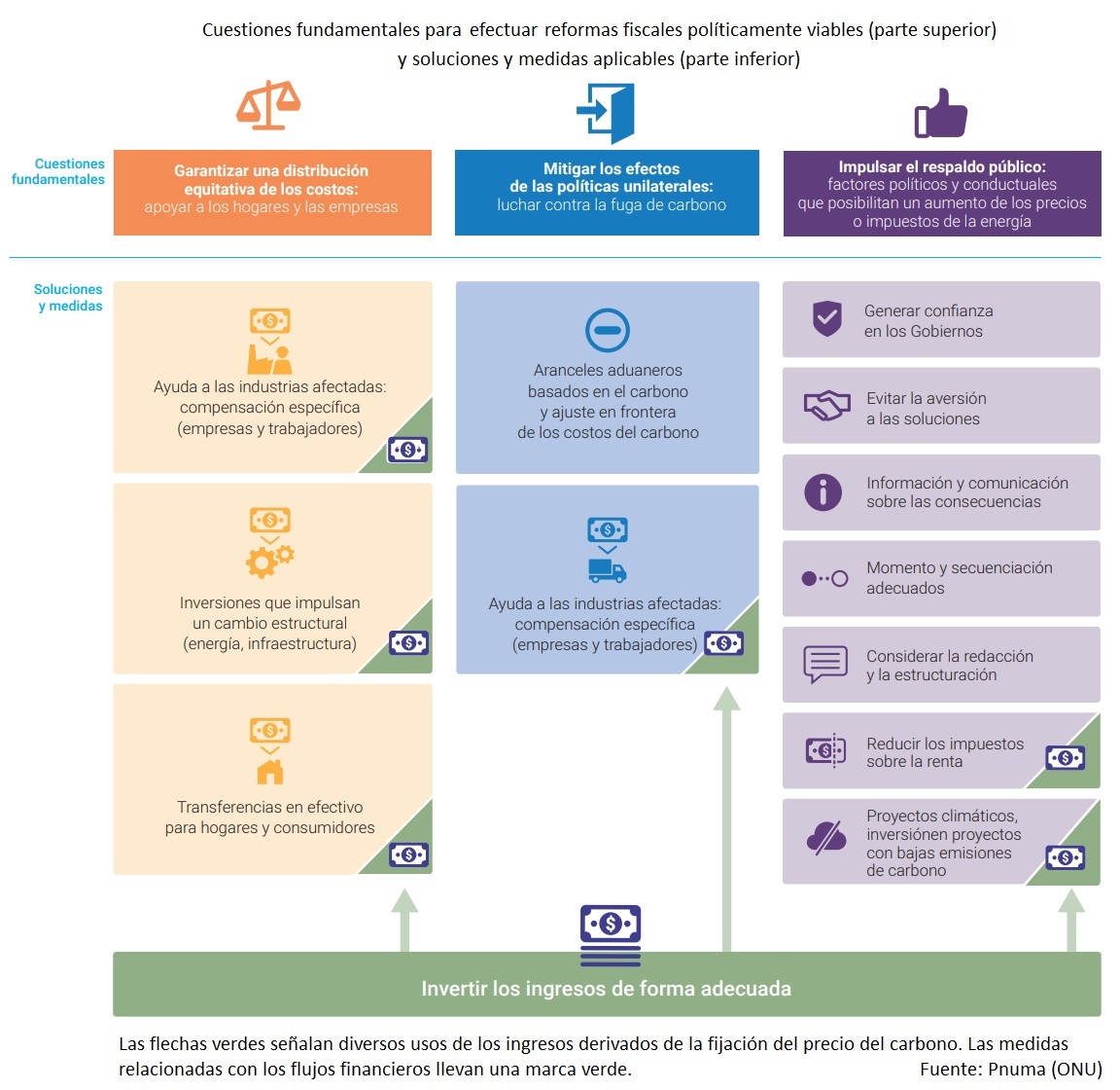 Habida cuenta de la emergencia -informa la ONU-, los autores del informe han elaborado "una hoja de ruta para implementar medidas transformadoras en la política fiscal, el campo de la innovación y la acción climática del sector privado y subnacional". En cuanto a las medidas fiscales, el jefe de Científicos del Pnuma, Jian Liu, ha sido muy explícito: el establecimiento por parte de los gobiernos de impuestos a los combustibles fósiles y medidas de política fiscal para subsidiar las alternativas de bajas emisiones -ha dicho- puede estimular las inversiones correctas en el sector energético y reducir significativamente las emisiones de carbono.