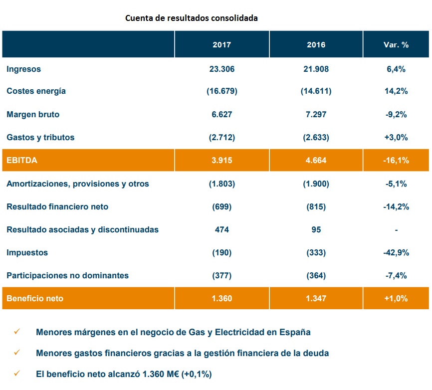 El ajuste lo ha percutido Naturgy "en sintonía con el nuevo entorno macroeconómico, las perspectivas de los principales indicadores del sector energético y las hipótesis contempladas en el plan" (Estratégico 2018-2022). ¿Consecuencia? Los analistas estiman que Gas Natural Fenosa, recién rebautizada como Naturgy, registrará pérdidas de unos 3.000 millones de euros este año. Sea como fuere, lo cierto es que soplan vientos de cambio en el sistema eléctrico nacional. Ayer mismo, informábamos aquí de los últimos movimientos de Gas Natural Fenosa (ahora Naturgy) en África. En el continente negro, la empresa que dirige Reynés acaba de anunciar la venta de su participación en la empresa Kangra Coal Proprietary Limited, que posee y opera un derecho minero en la provincia surafricana de Mpumalanga (carbón); y la venta del 100% de su participación accionarial en la keniata Iberafrica Power Limited, que posee y opera una planta de energía diésel de cerca de 103 MW. Además, en 2017 se ha adjudicado 1.000 megavatios eólicos en las subastas de España, lo que también sugiere su creciente interés por las energías limpias, que hasta ahora eran cola de ratón en su parque de generación. En fin, que Gas Natural (ahora Naturgy) parece dispuesta a transitar hacia territorio más renovable (al menos en España, porque lo cierto es que en 2017 ha ampliado su flota de metaneros y ha renovado y extendido sus contratos de gas con Argelia).