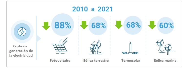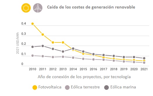 El informe Renewable Power Generation Costs in 2021 confirma el "rol crítico" -explican desde Irena- que está llamado a desempeñar el coste competitivo de las energías renovables en lo que se refiere a materializar los objetivos energéticos y climáticos del planeta. Según Irena, las renovables son clave para acelerar la transición energética hacia el horizonte fijado por el Acuerdo de París, acuerdo cuyo objetivo último es evitar que la temperatura del planeta suba más de un grado y medio (1,5ºC) por encima de la temperatura media global que se registraba en la Tierra en el período preindustrial (antes de 1850). La Agencia Internacional de las Energías Renovables considera que la energía solar y la eólica, con sus plazos de instalación relativamente cortos, deben constituirse en las vigas maestras sobre las que todos los países (1) deben sostener sus esfuerzos de reducción de uso de los combustibles fósiles, reducción hacia la desconexión final total, y (2) deben limitar los perjuicios macroeconómicos que puedan ver la luz en la transición hacia el cero neto en CO2. Irena calcula que en los países no OCDE, los 109.000 megavatios de nueva potencia renovable instalada en 2021 cuyo coste de generación es menor al de la central térmica fósil más barata van a propiciar un ahorro de al menos 5.700 millones de euros al año durante los próximos 25-30 años.