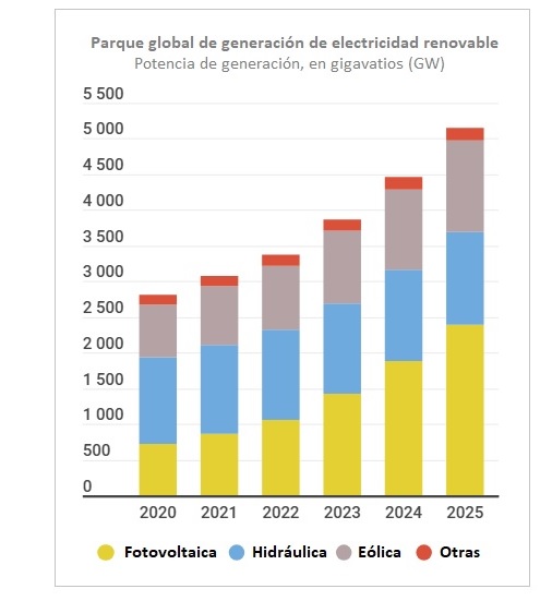 "Un aumento de casi 700 GW en 2025 demuestra la resiliencia de las energías renovables". Así titula hoy la International Renewable Energy Agency (Irena) la nota de prensa con la que anuncia la publicación de su informe anual Estadísticas de Capacidad Renovable 2026 (The Renewable Capacity Statistics 2026). La Agencia Internacional de las Energías Renovables destaca además en el subtítulo otra de las ideas-fuerza que mejor sostienen (y cada vez más) el discurso REN, la de la seguridad energética: "2025 -dice Irena- marca otro récord de capacidad mundial instalada, una señal para que los países refuercen la seguridad energética con fuentes renovables nacionales". Los números son irrefutables. Lo son en términos absolutos (692) y lo son más aún en términos relativos (según el último World Nuclear Industry Status Report -publicado en enero y equivalente a las Statistics de Irena-, el mundo todo apenas ha conectado en 2025 cuatro reactores nucleares, 4,4 gigavatios). El balance en todo caso no es cuatro coma, porque el mismo informe concreta que hasta siete reactores han sido cerrados (-2,8 GW).