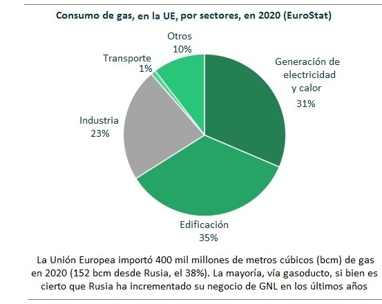 La Unión Europea importó 400.000 millones de metros cúbicos (400 bcm) de gas en 2020, 152 bcm, desde Rusia (el 38%). La mayoría de esas importaciones fueron vía gasoducto, si bien Rusia ha incrementado su negocio GNL (gas natural líquido transportado por buques metaneros) de manera considerable a lo largo de los últimos años. Pues bien, cuatro think tanks europeos -Bellona, Ember, E3G y Regulatory Assistance Project- han presentado hoy un análisis conjunto en el que sostienen que si al plan Fit for 55 (cuyo objetivo es reducir las emisiones 2030 de CO2 de la UE en un 55% con respecto a las registradas en 1990) le añadimos una serie de pluses (medidas adicionales en materia de eficiencia energética, de energías renovables, de electrificación, etcétera), la Unión Europea podría decirle adios al gas ruso en solo tres años, de aquí a 2025.
