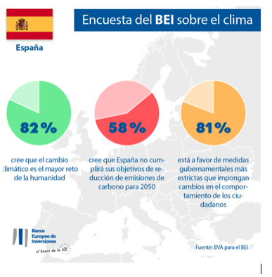 Para el 82 % de los españoles, el cambio climático y sus consecuencias son los mayores retos para la humanidad en el siglo XXI. Esta cifra es superior al 73 % en todos los grupos de edad y tendencias políticas de la población española. La mayoría de los españoles (81 %) considera, además, que el cambio climático tiene un impacto en su vida cotidiana, lo que supone un aumento de 5 puntos respecto al año pasado (76 %). Esta cifra es también cuatro puntos superior a la de los europeos en general (77 %).