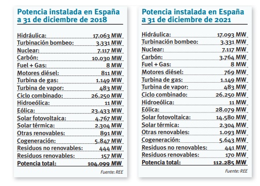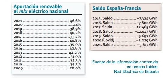 En la mejora de la balanza import-export de electricidad ha influido sin duda el incremento de potencia renovable experimentado durante los últimos tres años: casi 10.000 megavatios de potencia solar fotovoltaica se han añadido a la matriz energética nacional en este último trienio (había 4.767 megavatios a finales de 2018; 14.580 a finales de 2021) y otros casi 4.600 megas de potencia eólica se han sumado también al mix (había 23.433 megas eólicos a finales del 18; más de 28.000 a diciembre de 2021). Todos los datos son de Red Eléctrica de España.