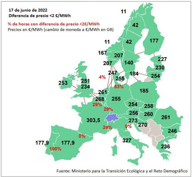 Hoy es el tercer día de aplicación de la denominada "excepción ibérica" para topar el precio del gas natural, y el precio medio de la electricidad en el mercado mayorista volverá a subir, con un repunte del 4,15% con respecto a este jueves, acercándose a la cota de los 180 euros por megavatio hora (MWh). Fuentes del Ministerio para la Transición Ecológica y el Reto Demográfico han indicado, no obstante, que, en ausencia del mecanismo, cuya correcta aplicación está supervisando la Comisión Nacional de los Mercados y la Competencia (CNMC), los precios en España habrían subido hasta el entorno de los 300 euros/MWh. Pese a todo, el presidente ha asegurado que España seguirá trabajando junto con la Unión Europea para reformar el sistema de fijación de precios de la electricidad, al que ha calificado de "trasnochado e injusto".