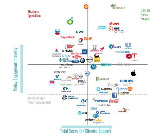 La conclusión del informe es tajante: la mayoría de las corporaciones más grandes e influyentes del mundo no están de verdad comprometidas con la política climática. Muchas de estas compañías (UPS, Pfizer, Microsoft, Coca Cola…) incluso siguen financiando a algunos de los grupos más influyentes que se oponen a la política climática, como la Cámara de Comercio de Estados Unidos. La consultora advierte que "esto puede socavar efectivamente cualquier impacto positivo que las empresas puedan tener en su propio compromiso con la política climática".