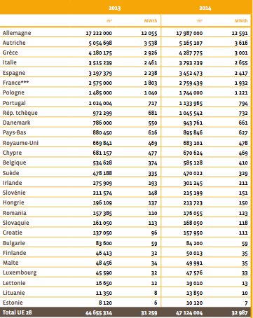 En cuanto a 2015, la situación sigue siendo incierta. Algunos observadores se declaran pesimistas sobre una recuperación en los países de Europa Central. La situación debería ser más favorable en Alemania gracias a un nuevo programa de incentivos. El programa RHI Domestic en el Reino Unido y la revalorización de los créditos fiscales en Francia también pueden enderezar el sector en ambos países. Igualmente, se espera que mejore en el mercado italiano con una nueva línea de incentivos de Conto Termico y de crédito fiscal.
