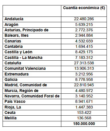 Las ayudas, que se otorgarán en régimen de concurrencia simple, estarán vigentes hasta el 31 de diciembre de 2023 y serán gestionadas por las comunidades y ciudades autónomas. Inicialmente se repartirán 150 millones de euros en base a criterios objetivos como el peso de los sectores en cada Comunidad Autónoma, mientras que el presupuesto restante quedará para ampliaciones en función de la ejecución de los fondos iniciales.