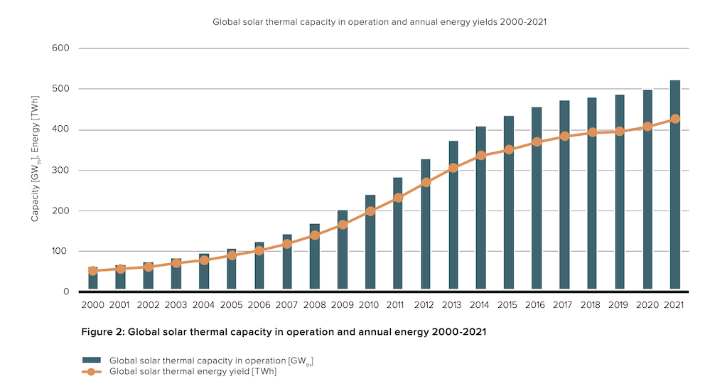 Estas son algunas de las cifras clave del informe de este año, Solar Heat Worldwide 2022, publicado por el Programa de Colaboración Tecnológica en Calefacción y Refrigeración Solar de la Agencia Internacional de la Energía (IEA SHC). Los datos, procedentes de los 70 países que han contribuido a este informe, que cumple su 18º edición, constituyen la evaluación más completa de los mercados de la calefacción y la refrigeración solar en todo el mundo.