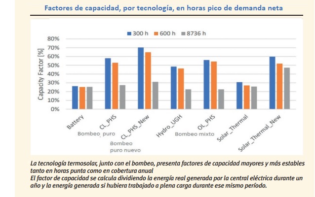 En cuanto a la cobertura de la demanda, el estudio de la Universidad Pontificia Comillas concluye que las centrales de bombeo y termosolares con almacenamiento térmico presentan factores de capacidad superiores al 50% entre las 300 y las 600 horas anuales más críticas de demanda, “horas de máxima demanda neta (demanda crítica) que es la demanda bruta una vez descontada la generación intermitente (eólica y fotovoltaica)”. Y el factor de capacidad –tal y como ya apuntamos– se mide como la energía máxima entregada en un periodo respecto al máximo producible por su potencia instalada. O sea, que si el horizonte 2030 es 7.300 megavatios de termosolar y 6.800 de bombeos puros (14.100, en total, que es lo que plantea el Pniec de 2020) estaríamos hablando de una disponibilidad (factor de capacidad superior al 50%) de más de 7.000 megavatios en esas 600 horas anuales más críticas de demanda. Con ellos, sumados a los 7.000 de gas que Protermosolar considera necesarios en 2030, tendríamos solución más que suficiente para resolver las rampas top de ese año: hasta -10.700 megavatios (rampa a bajar) y +12.700 (rampa a subir). ¿Conclusión? Comillas dice que no hacen falta 26.000 megavatios de gas, que basta con 7.000.