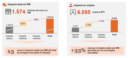 Por otro lado, en el plano macroeconómico, según un estudio de PwC para Protermosolar la tecnología termosolar en operación durante el año 2019 genera el triple de impacto medio por MW instalado que el total de energías renovables de España, así como un 33% adicional de empleo.