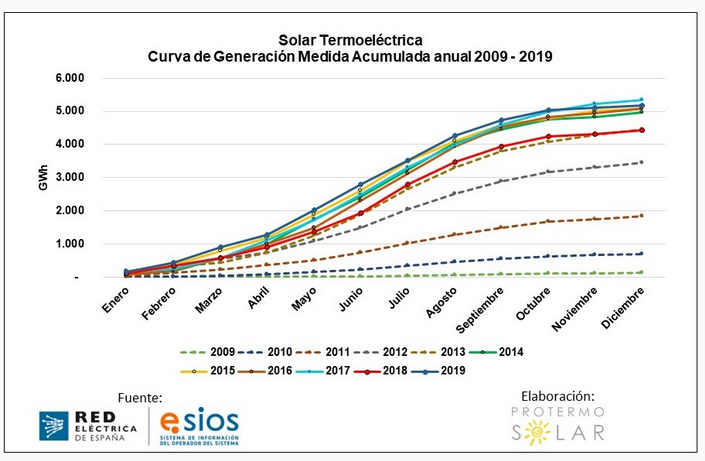 "La termosolar ha reforzado durante el pasado año su posicionamiento como tecnología imprescindible para afrontar la transición energética, gracias al almacenamiento térmico del que estarán provistas todas las futuras centrales, que podrán comenzar a despachar a partir del atardecer reemplazando parte de la producción fotovoltaica y reduciendo la necesidad de respaldo fósil durante la noche", afirman desde la asociación del sector en un comunicado.