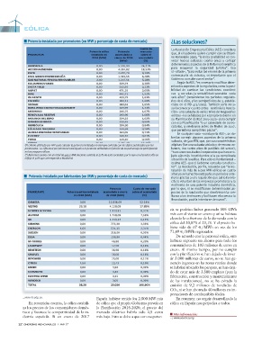 n Potencia instalada por fabricantes (en MW y porcentaje de cuota de mercado) riores gracias a una regulación que así lo favore-