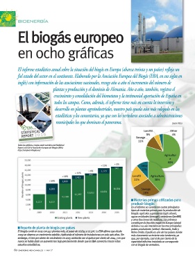 El informe estadístico anual sobre la situación del biogás en Europa (abarca treinta y un países) refleja un