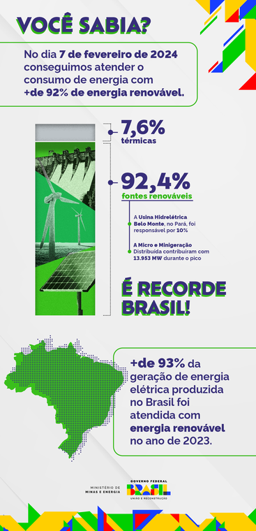 El Operador del Sistema Eléctrico Nacional señala que desde noviembre del año pasado se han producido tres récords de generación de electricidad a través de fuentes renovables. La marca anterior fue registrada a las 14:20 horas del 14 de noviembre de 2023, cuando el Sistema Interconectado Nacional demandó 101.475 MW. En la víspera, la carga total superó por primera vez los 100.000 MW. En ese momento, Brasil atravesaba una ola de calor, "que requería mayor potencia proveniente de fuentes de energía eléctrica", explican desde el ministerio.