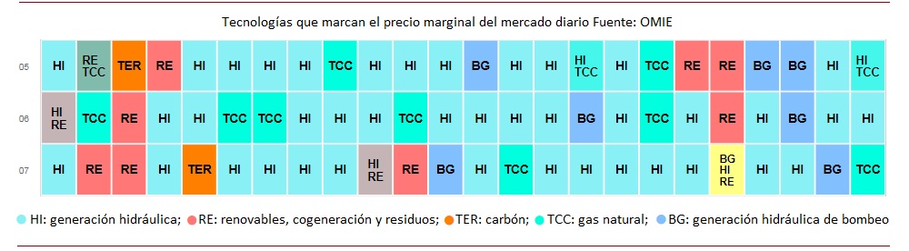 Y los precios del mercado mayorista salen de una subasta en la que la tecnología que fija precio es la última, la que cuadra oferta y demanda. El precio que fija no es el precio al que cobrará su megavatio, sino que ese precio va a arrastrar (al alza) a todos los demás.