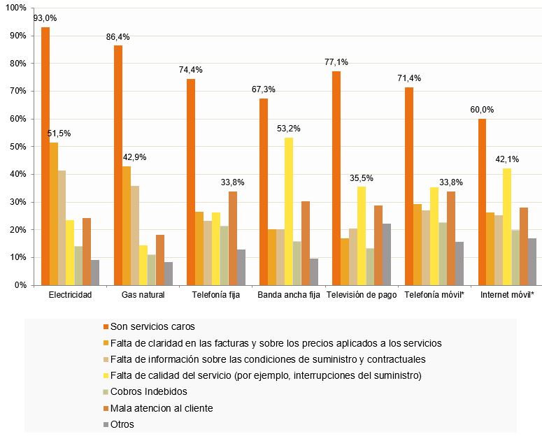 En general, para todos los servicios, ya sean de telecos o energéticos, la percepción de falta de calidad en el servicio ha aumentado en el último año.