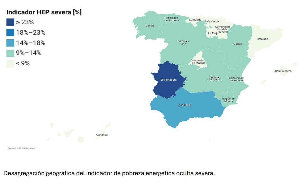 El informe propone replantear el peso de los indicadores tradicionales. Las variables de "gasto desproporcionado" y de "gasto insuficiente" muestran patrones estancados, mientras que la "pobreza energética oculta" revela la verdadera profundidad de la vulnerabilidad.